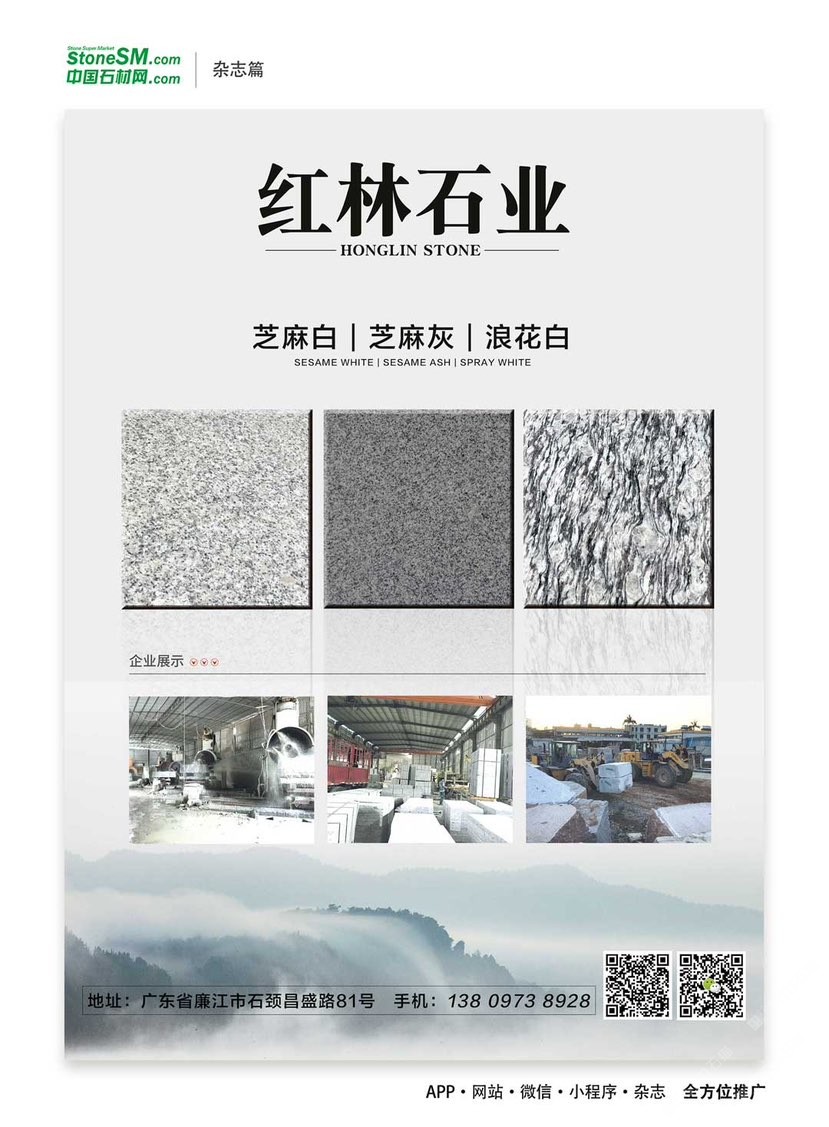 紅林石材廠位于廣東省廉江市石材工業(yè)園區(qū),擁用大型礦山資源,主要出產(chǎn)國(guó)內(nèi)知名品種如工:芝麻白、海浪花、芝麻灰,楓葉紅等花崗巖石材,我廠主要做各種規(guī)格臺(tái)板、地板磚、荒料石、石材加工、風(fēng)景石、園林石、觀賞石、招牌石、門(mén)牌石、陽(yáng)臺(tái)花瓶、欄桿、風(fēng)水球、石桌石凳等工藝加工及別墅精裝設(shè)計(jì)。另外可根據(jù)用戶需要進(jìn)行各種異形材加工,產(chǎn)品銷往全國(guó)各地。本廠具有長(zhǎng)期加工經(jīng)驗(yàn),質(zhì)量可靠。公司秉承“以誠(chéng)信為根本,以質(zhì)量為生存”的經(jīng)營(yíng)理念,堅(jiān)持“客戶、互惠互利”的原則為廣大客戶提供優(yōu)質(zhì)的服務(wù)。歡迎廣大的新老用戶,前來(lái)洽談合作!