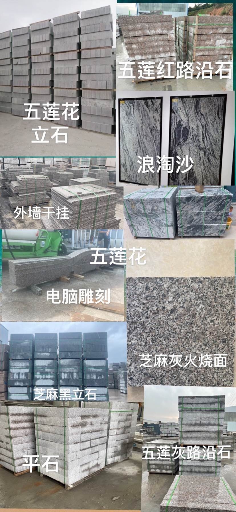 主營:五蓮花,五蓮灰,浪淘沙,芝麻白,芝麻灰