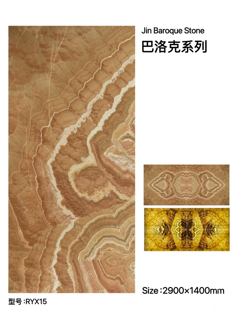 金巴洛克礦石--三大系列:巴洛克系列;鳳凰玉系列;孔雀玉系列!板面紋理富有東方哲學的美,獨特的曲線,靈動柔美,層次變化豐富,顏色以柔和桃色為主,色彩過渡自然,透光性呈現(xiàn)黃金般璀璨,3D立體幾何圖案。永恒經(jīng)典的金字塔斜紋;祥云紋;水紋和鳳紋是金巴洛克石的獨有符號!無論是用于家居裝飾還是商業(yè)空間,都能給人帶來意想不到的驚喜,期待你的發(fā)現(xiàn)。聯(lián)系/微信??:15960638449;地址:鵬翔石材城3號門F15區(qū)金巴洛克石業(yè)!