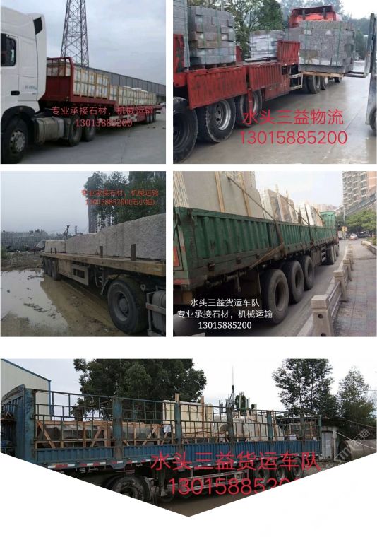 發(fā)布信息: 水頭三益物流 專業(yè)承接石材,機(jī)械運(yùn)輸! 供應(yīng)各類大小車型! 可開專用發(fā)票,代開各類保險(xiǎn)等業(yè)務(wù)。 歡迎新老客戶來(lái)電13015885200(小陸)