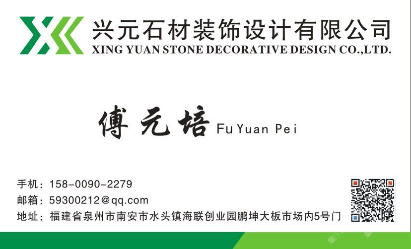 興元石材裝飾設計 聯(lián)系人:傅    158****2279 查看 手機號碼:無 主營范圍: 更多、其他、 企業(yè)地址:福建泉州水頭鎮(zhèn)勞光村傅厝路口50號