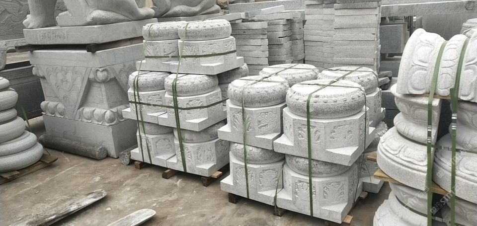 芝麻灰芝麻白磨光仿古柱墩,石鼓柱腳