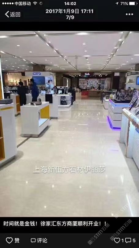 上海新伍方石材 聯(lián)系人:仇先生(南通六泉石材市場內(nèi))    131****1330 查看 021****0898 查看 主營范圍: 大板批發(fā)、荒料、大理石加工、異型加工、礦山、 企業(yè)地址:上海上海曹安公路4058號(hào)東華環(huán)球北二館Ko2,k04