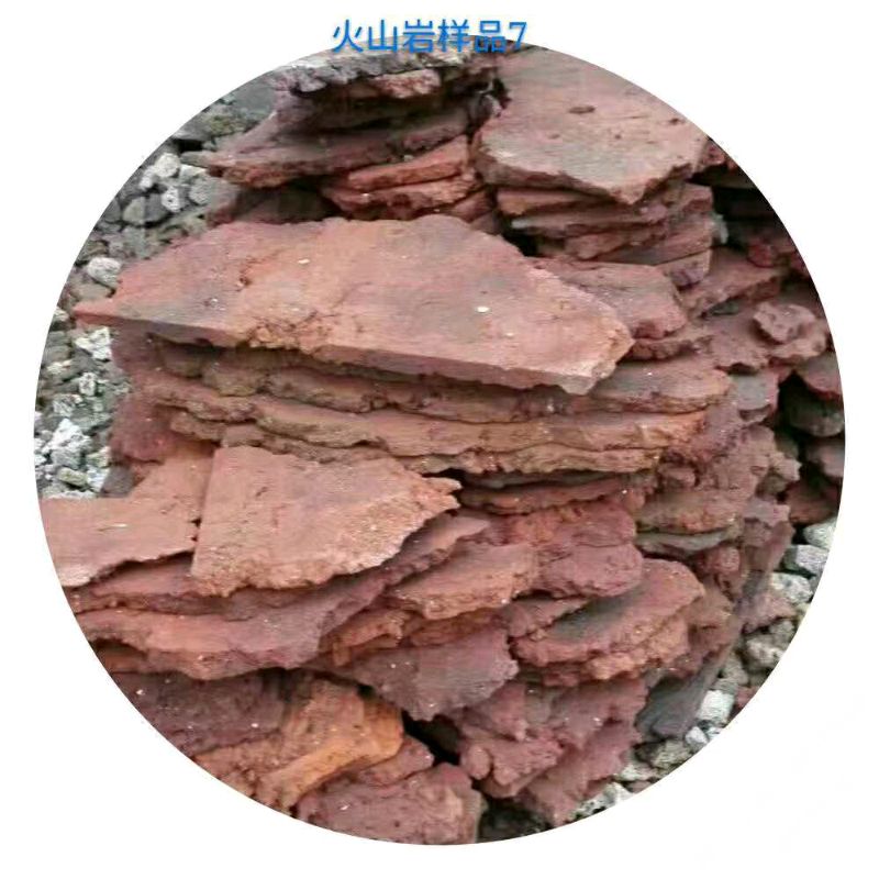 5-7公分厚,10-25公分不規(guī)則寬,一面機切面、一面自然面紅色火山巖樣品