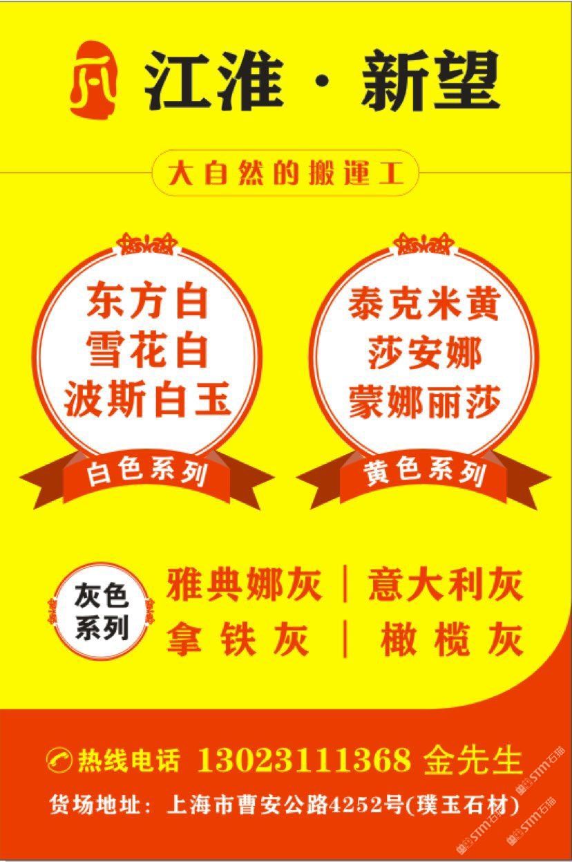 江淮貿(mào)易 聯(lián)系人:金先生    130****1368 查看 130****1368 查看 主營(yíng)范圍: 大板批發(fā)、大理石加工、異型加工、荒料、石材工藝品、 企業(yè)地址:上海上海嘉定區(qū)曹安公路璞玉精品市場(chǎng)