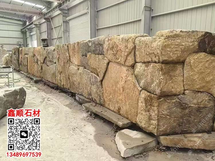 黃銹石壘墻石自然面墻磚天然石皮背景墻護坡石黃色毛石