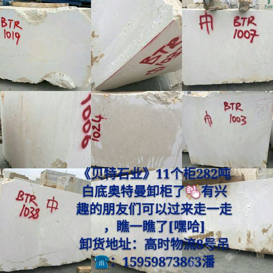 發(fā)布信息: 新到白底奧特曼荒料,卸于高時物流8號吊,歡迎各位領(lǐng)導(dǎo)前來圍觀選購!?:15959873863潘
