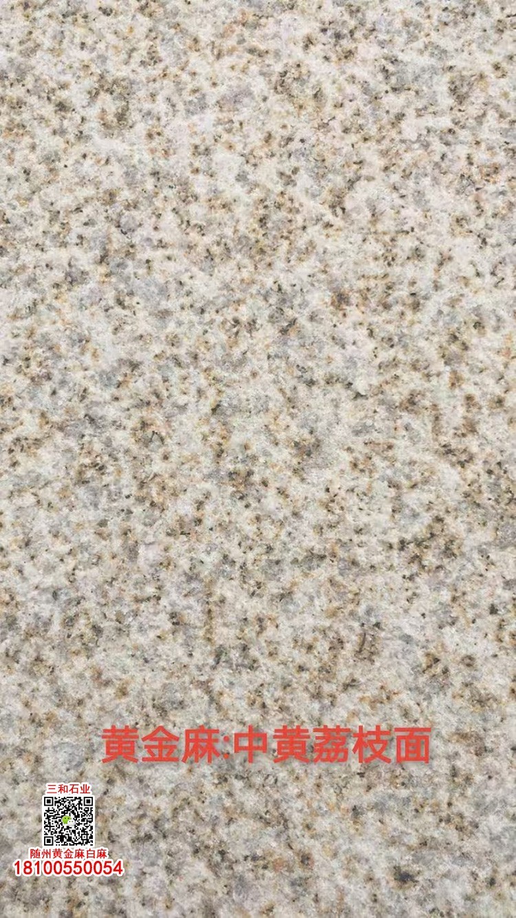 隨州黃金麻石材-隨州白麻花崗巖-光面黃金麻-燒面黃金麻-荔枝面黃金麻-光面白麻-燒面白麻-荔枝面白麻 隨縣三和石業(yè) 劉經(jīng)理 18100550054(微信同號)專業(yè)隨州黃金麻/白麻供應(yīng)商廠家,工廠位于隨州石材工業(yè)園;專注于別墅幕墻干掛工程及園林地鋪石材加工,實(shí)力工廠,廠礦一體;主營:隨州黃金麻、隨州白麻、湖北黃金麻、湖北白麻、黃銹石、白銹石、黃色麻石、白色麻石、光面黃金麻、燒面黃金麻、荔枝面黃金麻等花崗巖;同等品質(zhì)基地批發(fā)價(jià)格更低,隨縣三和石業(yè)有限公司歡迎你來電溝通洽談業(yè)務(wù)!